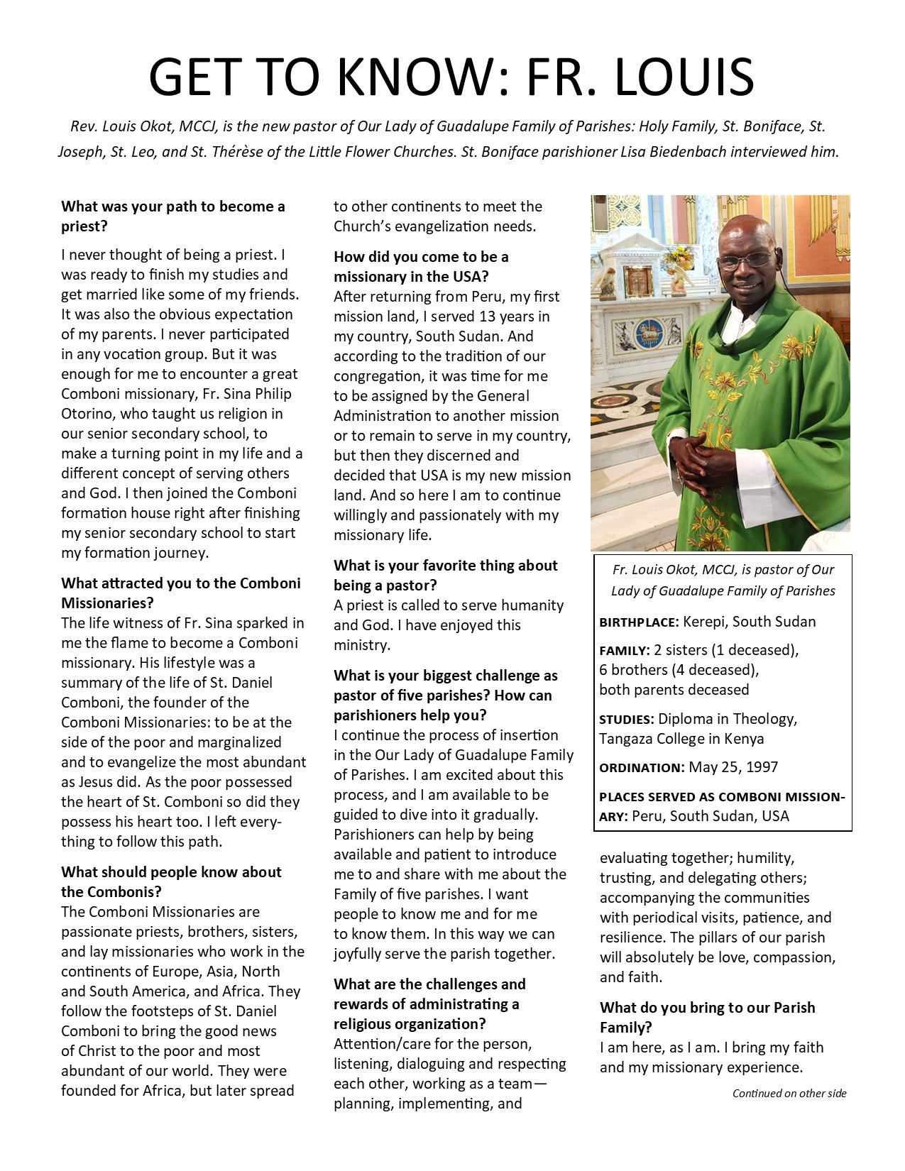 * Fr. Samuel will have office hours at St. Boniface on Wednesdays from 3:00 – 5:00 p.m. He will be available for counseling, spiritual direction, and confessions during this time.