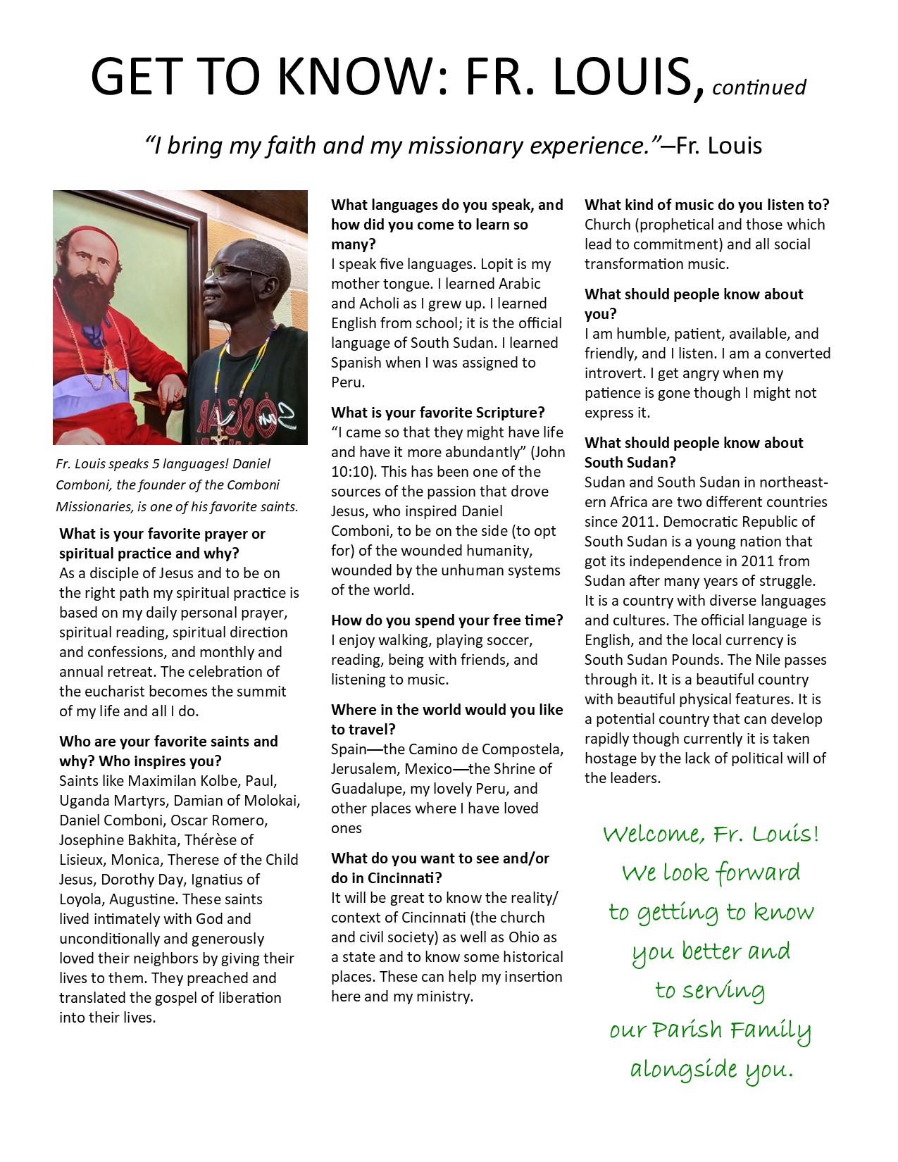 It is suggested you call the priests ahead of time, 513-541-1563, to make sure they aren’t with someone else when you wish to see them during their scheduled times.